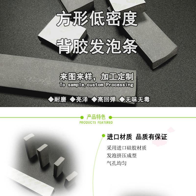 發(fā)泡硅橡膠制品產(chǎn)品名稱:方形低密度背膠發(fā)泡條