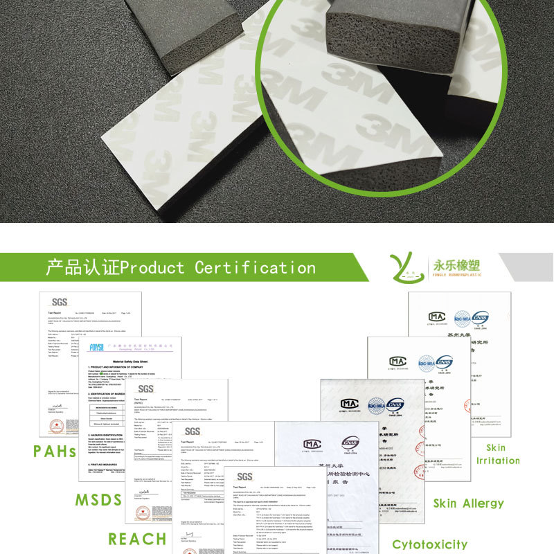 產(chǎn)品認(rèn)證:發(fā)泡條類可達(dá)到食品FDA,發(fā)泡板ROHS等